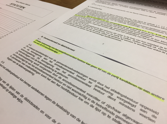 De statuten/regels van de partij (die reeds bestaan sinds het begin van de partij) zijn duidelijk: artikel 1.7 ‘Door te kandideren op een niet-goedgekeurde lijst sluit een lid zichzelf uit. Hierop volgt een automatische uitsluiting als lid’ en artikel 6.7 ‘Zonder toestemming van het arrondissementeel bestuur kan geen lid van de partij kandideren op een andere dan een N-VA-kandidatenlijst,” aldus N-VA nationaal.